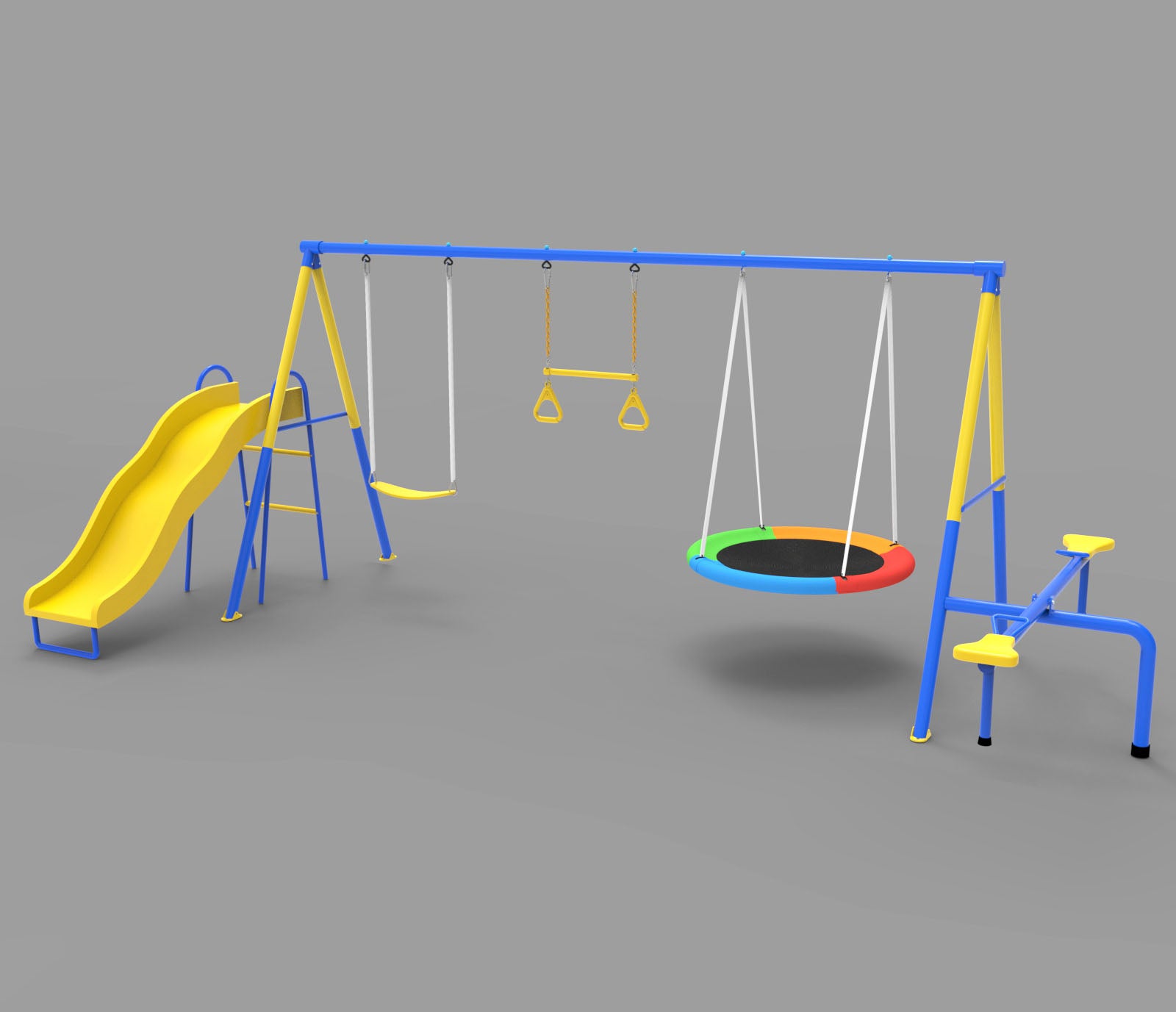 Impressive quality for a home playset. The the wide base and the powder‑coated steel frame get the most use. Bolts tightened up nicely. Birthday party hit—everyone took turns. No rust after a month of coastal humidity. Highly recommend for families.